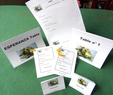 Each of these Kits includes various ready-to-print elements : Tables cardboards , big and small menus, place-cards ... with the same exotic decorative logo (here logo with decorative coconut).